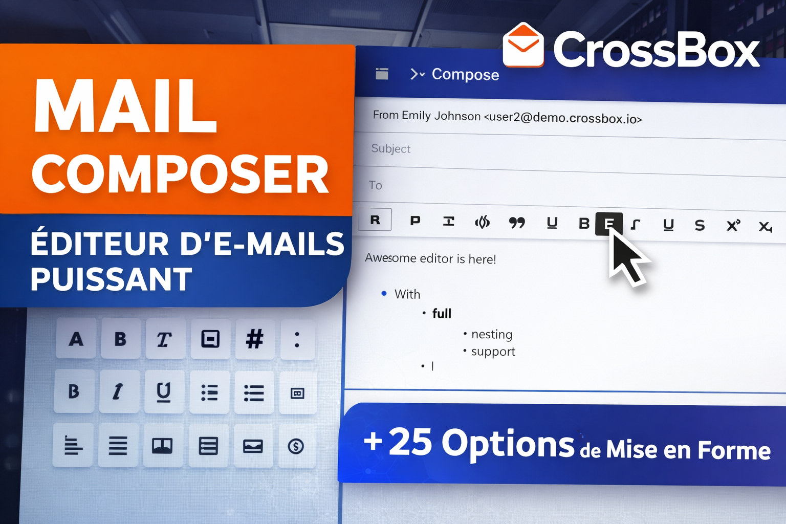 CrossBOX transforme vos boîtes mail en une véritable suite de communication moderne : une interface fluide et premium, accessible partout, pensée pour les professionnels exigeants.
